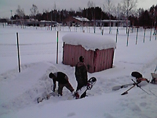 雪がこの二・三日降っていないということで、ジャンプの撮影は諦め古びたコンテナで撮影する事にした